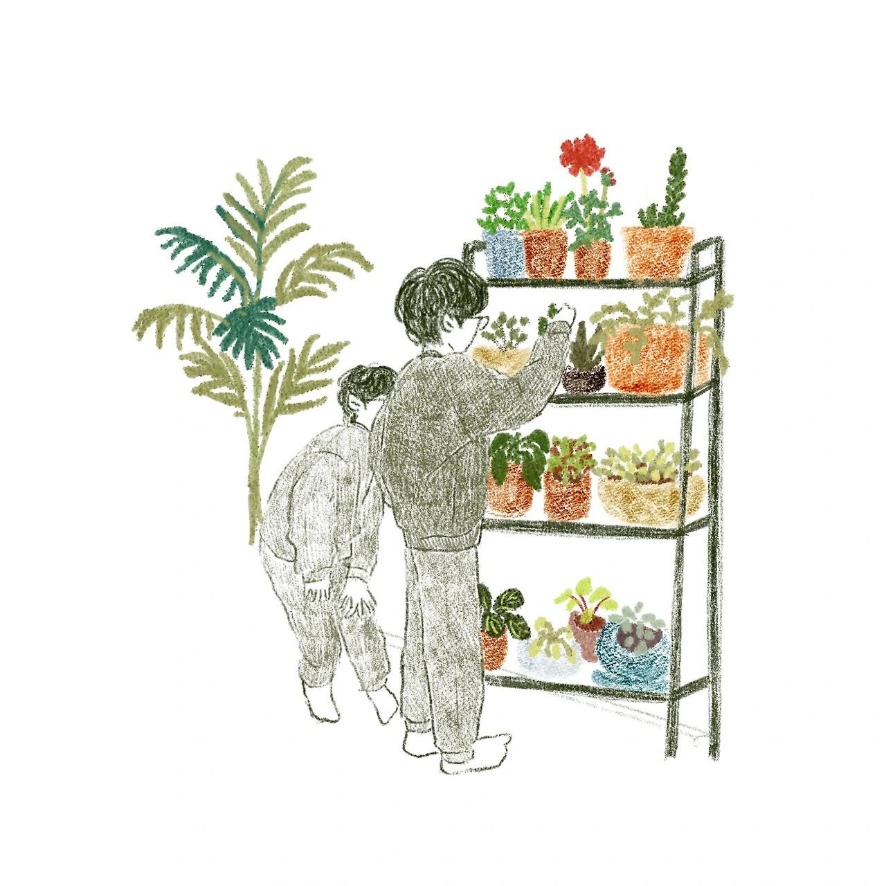 꽤 오랜만에 엄마집에 간 기분이 든다. 대여해 사용하시던 재활운동기구를 반납했고 겨우내 집안에 들어와 있던 화분도 베란다로 다시 다 나가 거실이 휑하니 넓어져 있었다. 아이들은 할머니집이 비어 보이든, 꽉 차 보이든 개의치 않는다. 화분들이 베란다로 나갔네, 와! 매번 갈 때마다 보던 꽃화분이지만 또 새롭게 하나하나 들여다 보고 매만져 보는 아이들 뒷통수가 부쩍 위로 올라와 보였다.