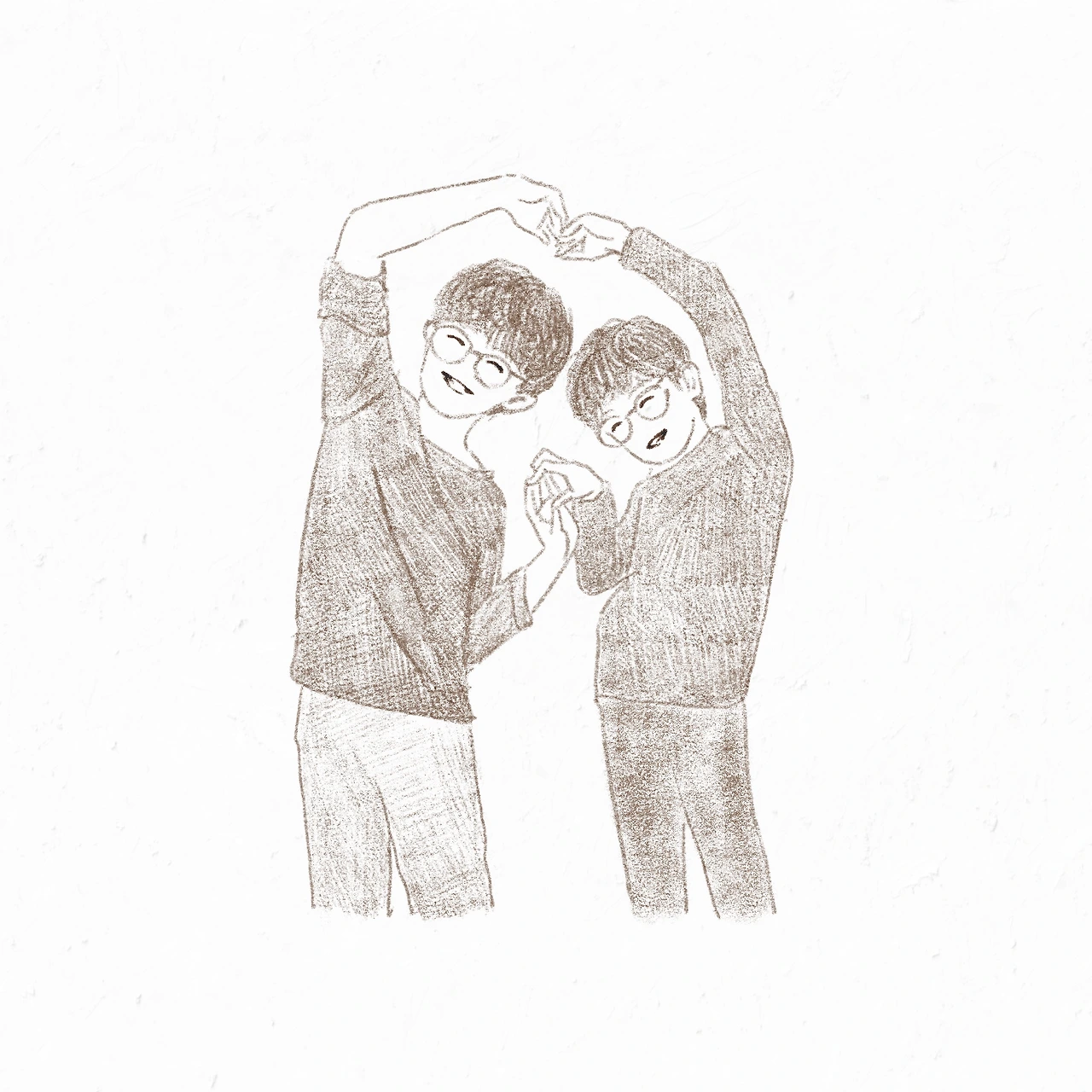 한동안 바쁘기도 했고, 이상하게 손이 가지 않아 그림을 안 그렸다. 예쁜 펜슬 케이스를 사면 그림을 그릴까 싶어 새 껍질도 사 보고, 그림 그리기 책도 빌려 읽고, 남들 그리는 것도 구경하곤 했는데 결국 다시 펜을 쥐게 한 건 아이들 모습이다. 예뻐. 하루하루가 아까운 아이들의 성장. 어제는 둘이 나란히 서서 허우적거리더니 엉성한 하트를 두 개 만들어 보여주었다.