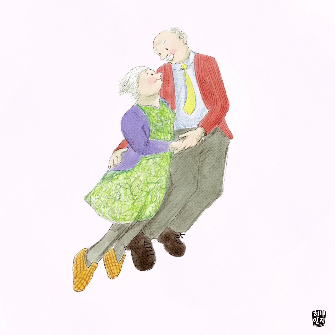 이 책을 읽으며 남편 생각을 하지 않기는 어렵다. 껴안고 하늘로 둥실 오르는 것 같은 할머니 할아버지의 얼굴을 한참 바라보았다. 두 사람의 눈빛이, 살짝 부푼 볼이, 꼭 잡은 손이 이렇게 말하는 것 같다. 나는 당신을 의지해요, 당신을 만나 행복해요, 당신도 행복하세요, 고마워요. 저쪽 방에서 코끼리 떼가 이동하는 것 같은 코 고는 소리가 울려온다. 환한 방에서 이불을 머리 끝까지 뒤집어쓰고 전투적으로 자고 있는 남편을 잠시 바라보다가 조용히 불을 끄고 문을 닫아 주었다. 어째 해가 갈수록 싸움이 싱거워진다.
