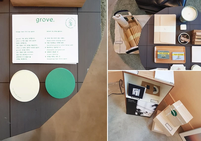 또한 grove. 는 작은 숲을 표현하기 위해 디자인 스튜디오 콩과 하와 함께 공간 스타일링을 진행했다.