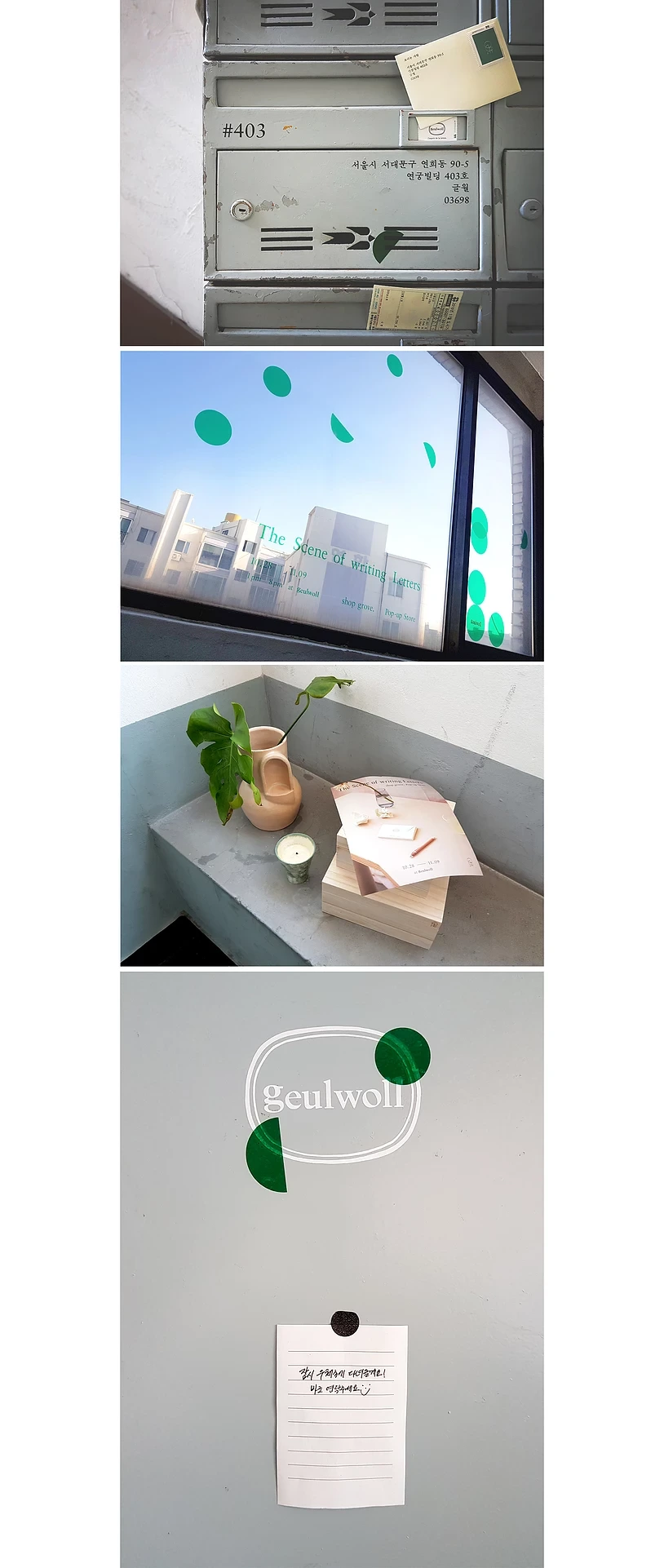 글월은 오래된 건물 4층에 있는데 일단 엘리베이터가 없다. 하지만 1층 우편함부터 4층까지 곳곳에 심어둔 글월의 조각 덕분에 가는 길이 지루하지 않았다.