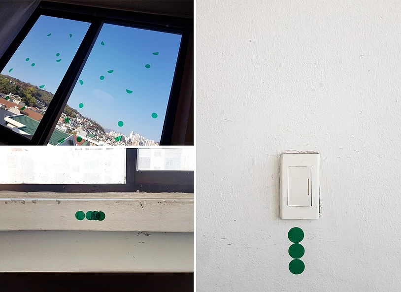 건물 1층부터 길잡이 역할을 톡톡이 했던 이 귀여운 초록색 그래픽도 이번 팝업을 위해서 만들었다고.