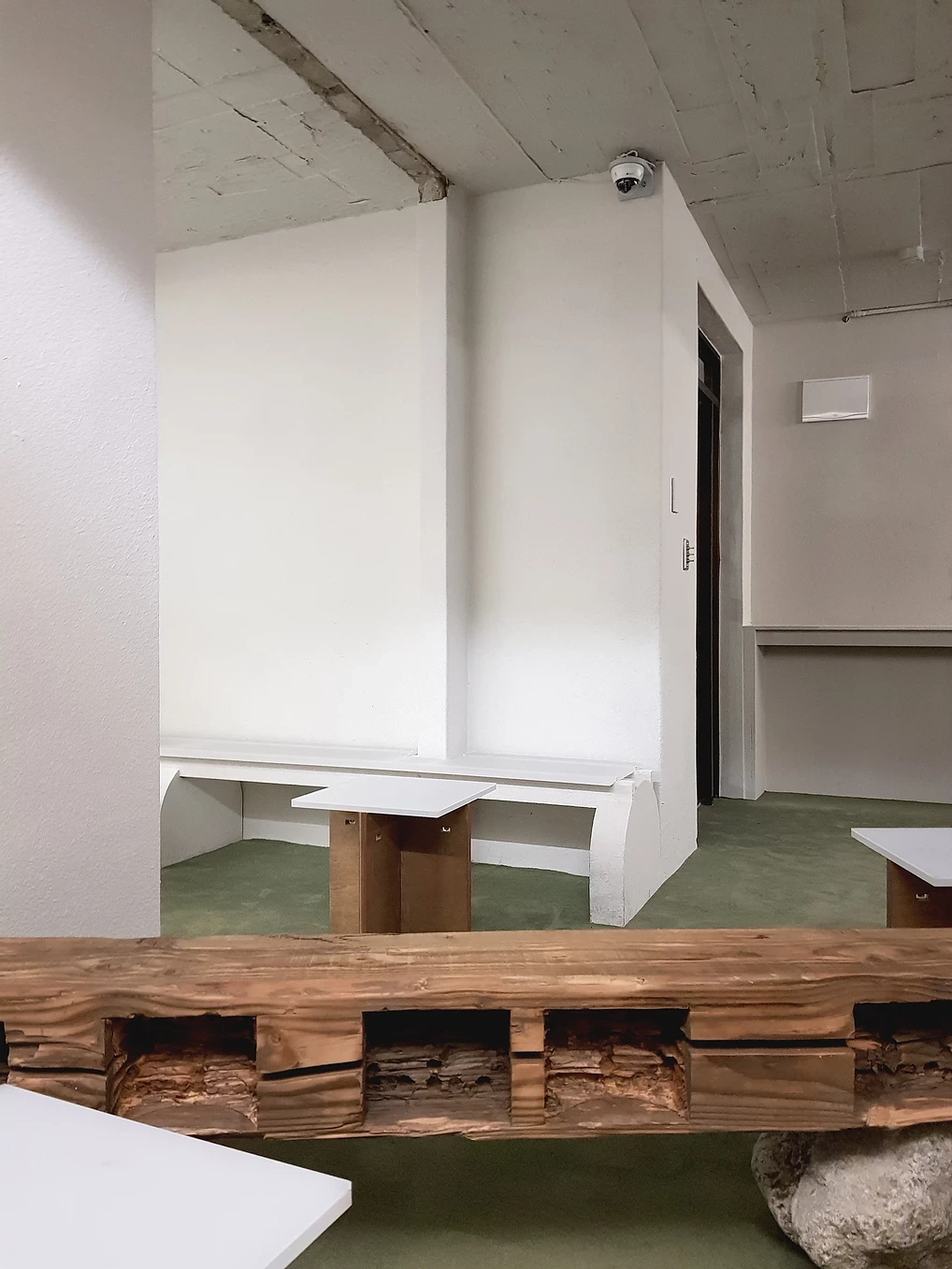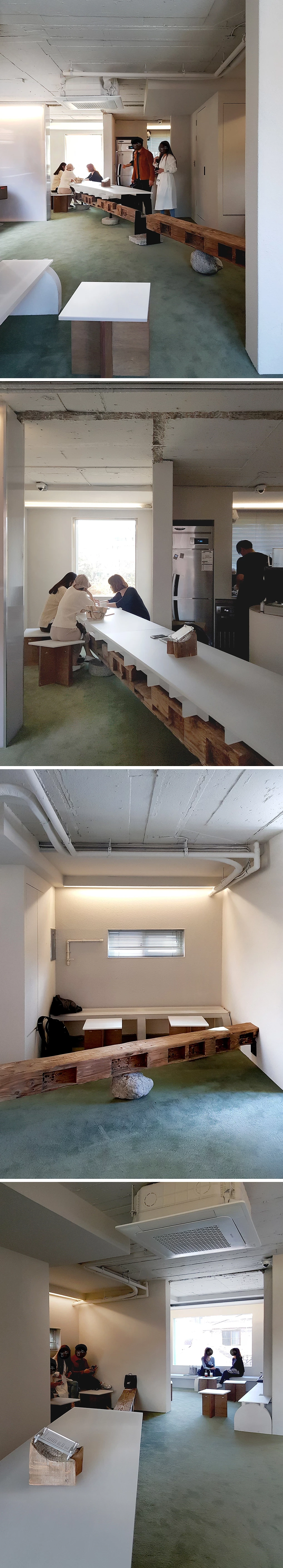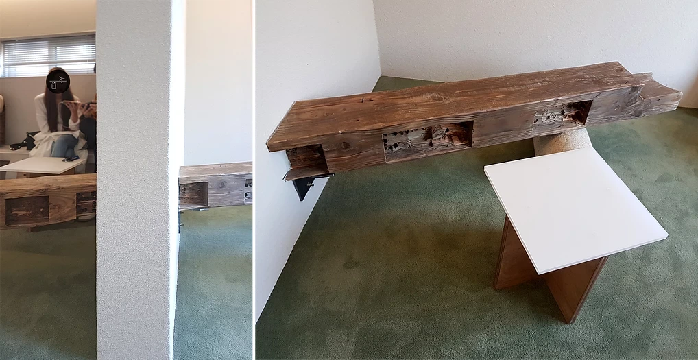또한 이 가구는 벽을 관통하기도 하는데 이는 나무 보호를 위해서 옆으로 낸 도로의 이미지를 떠올리게 했다.