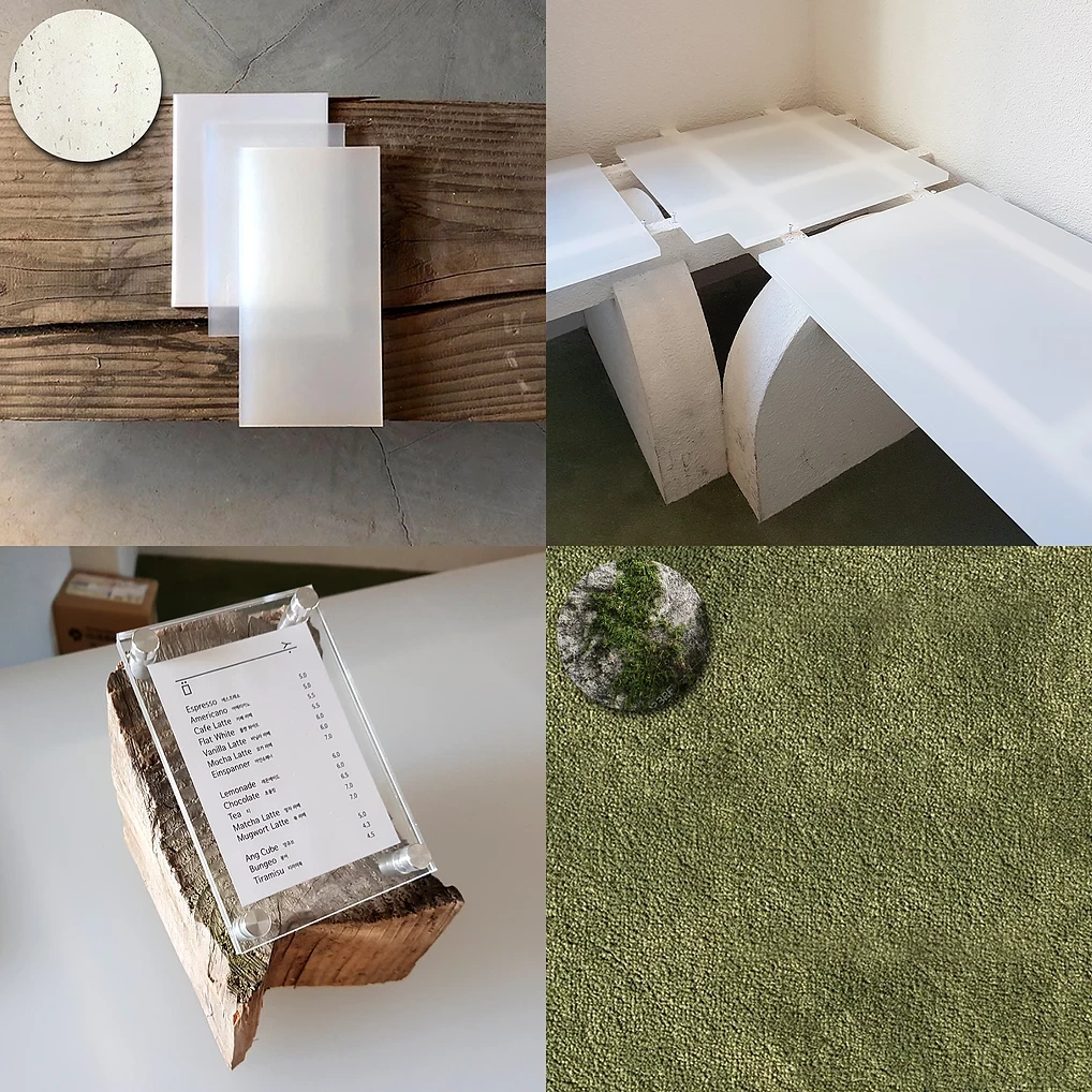 또한 전통요소를 현대적인 소재로 바꾸어 대입했는데, 한지의 느낌과 비슷한 아크릴을 사용하거나, 자연의 이끼 대신 뇌록 색 바닥 카펫을 깔아 전통의 느낌을 유지하면서도 트렌디하게 디자인했다.