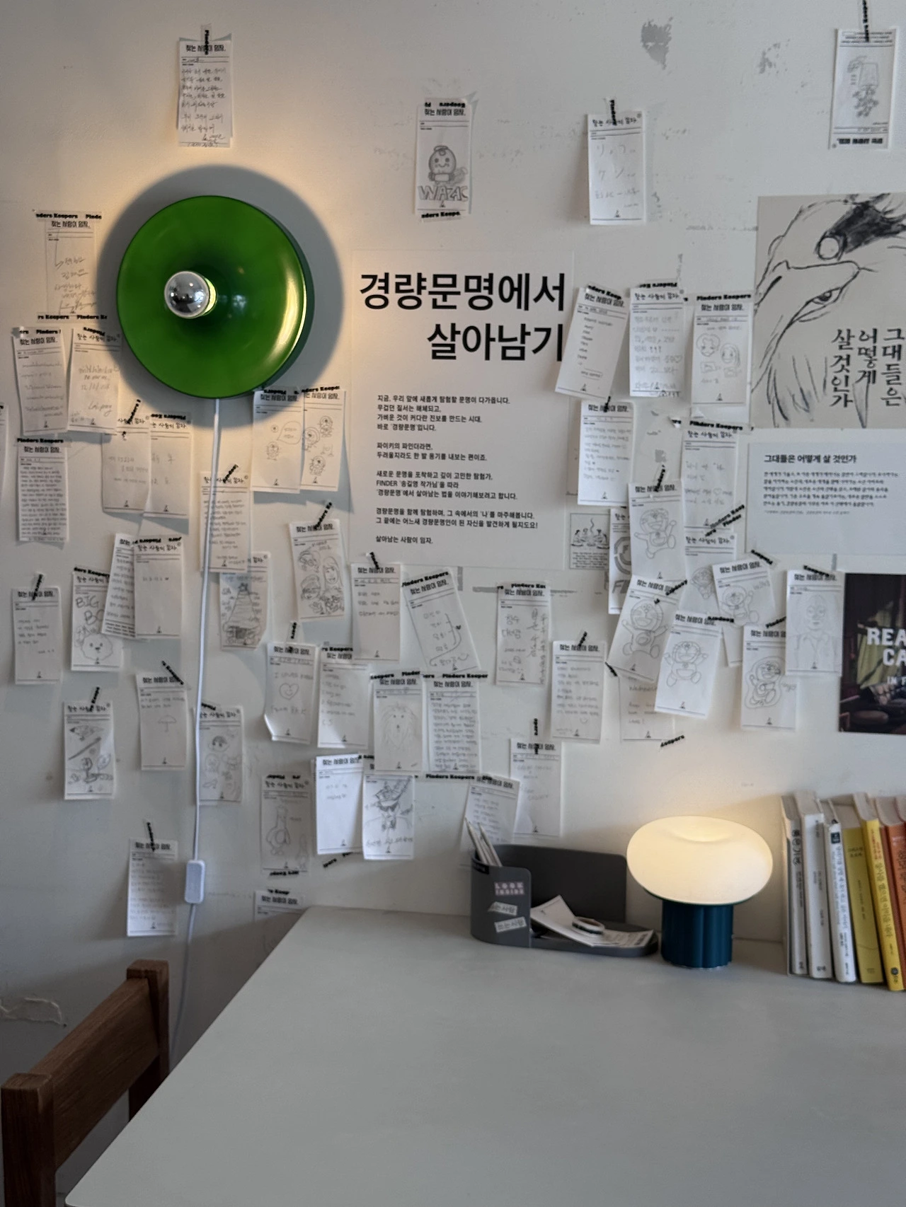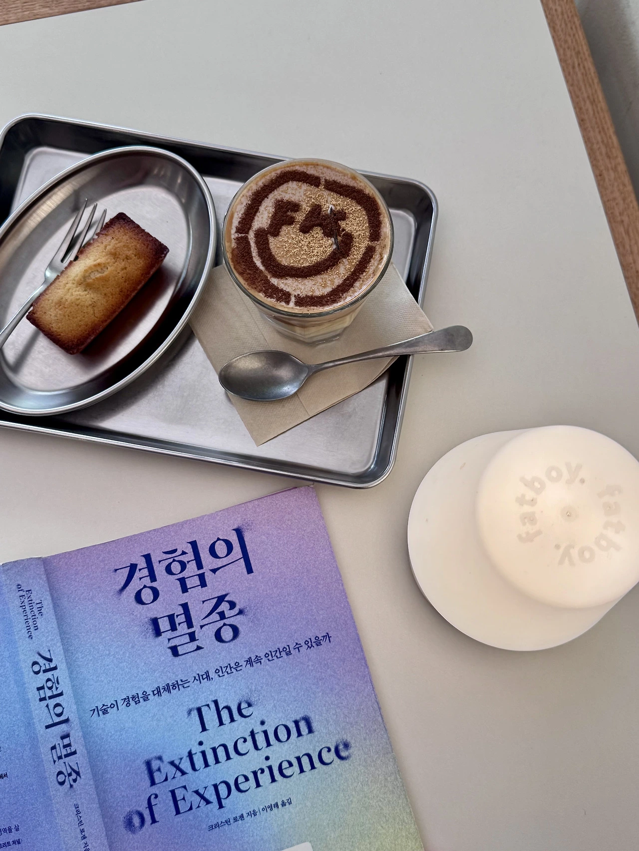 창덕궁 인근이라 그런지 외국인 커플도 보이고 시간이 지나면서 초록초록한 돌담길로 지나다니는 사람들도 더해졌다. 커피가 생각보다 오래 걸린다 싶었는데 왠걸, 부러 찾아와 주어서 고맙다며 구움 쿠키와 함께 예쁘게 커피를 내 오셨다. 혹시라도 내 말이 컴플레인으로 다가갔을까 적잖이 걱정이 되면서도 미소로 건네주신 커피 트레이에 그런 우려도 금새 눈녹듯 사라졌다. 가져간 책이 ‘경험의 멸종’ 이었는데 오히려 이 책이 매개가 되어 사람 사이의 정을 느낄 수 있게 된 게 신기해 독서 모임과 글벗 톡방에 종알종알 이야기를 나눴다. 정말 편하게 책 읽을겸 쉴 겸 시간을 보내고 감사하다는 인사를 드리고 카페를 나섰다.