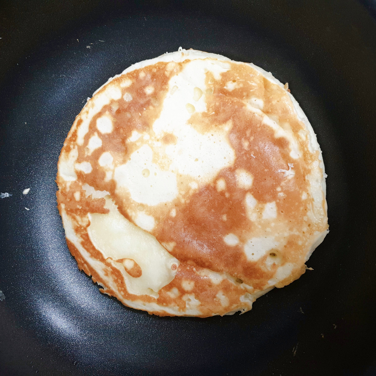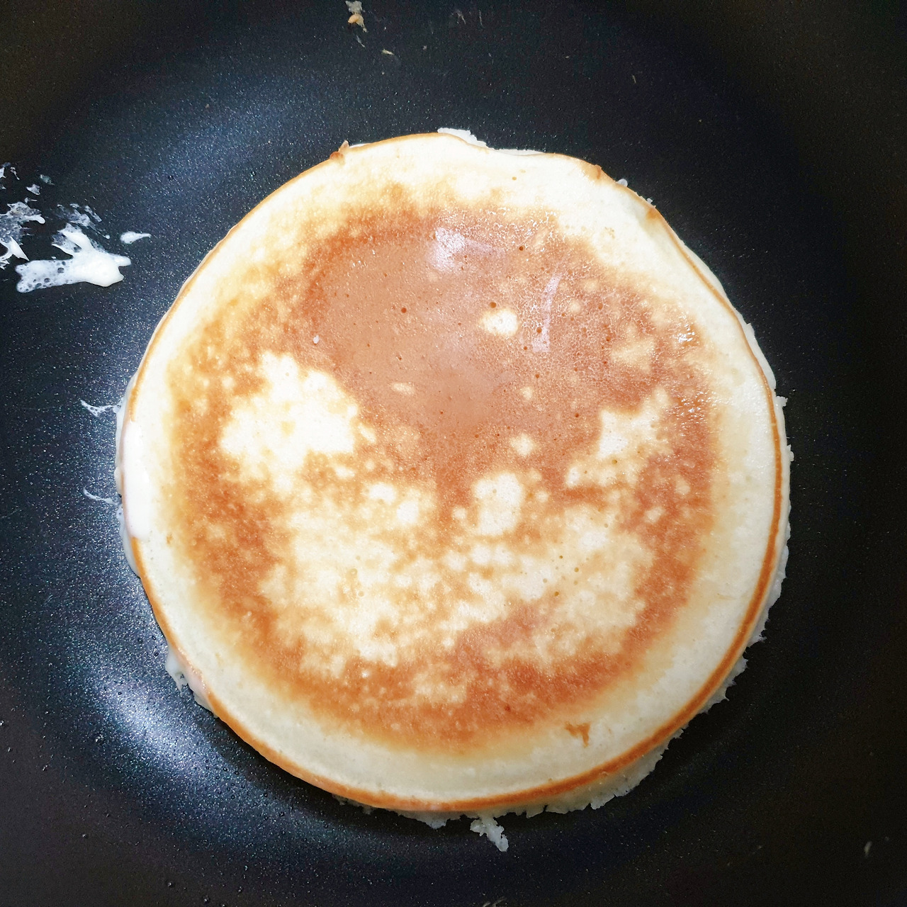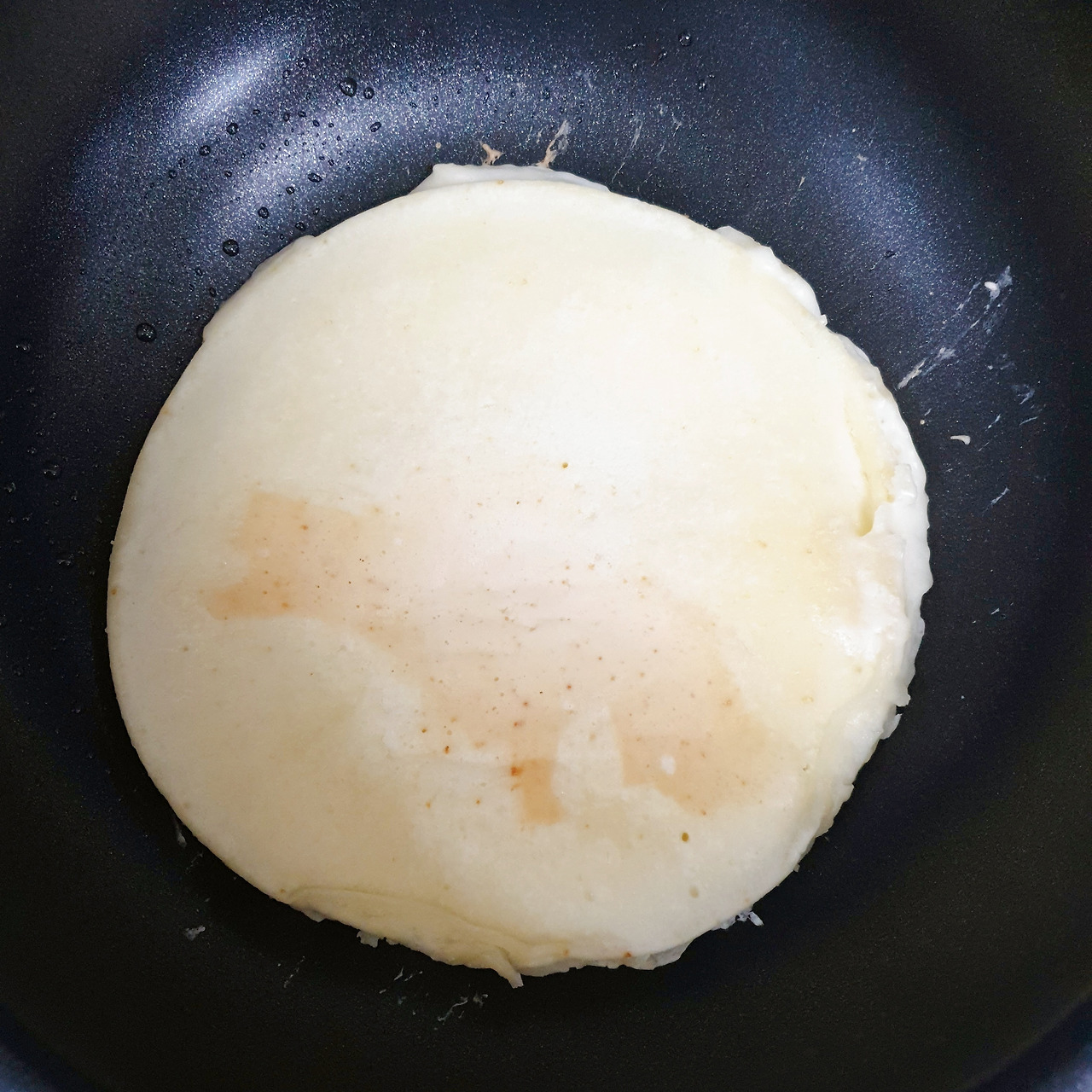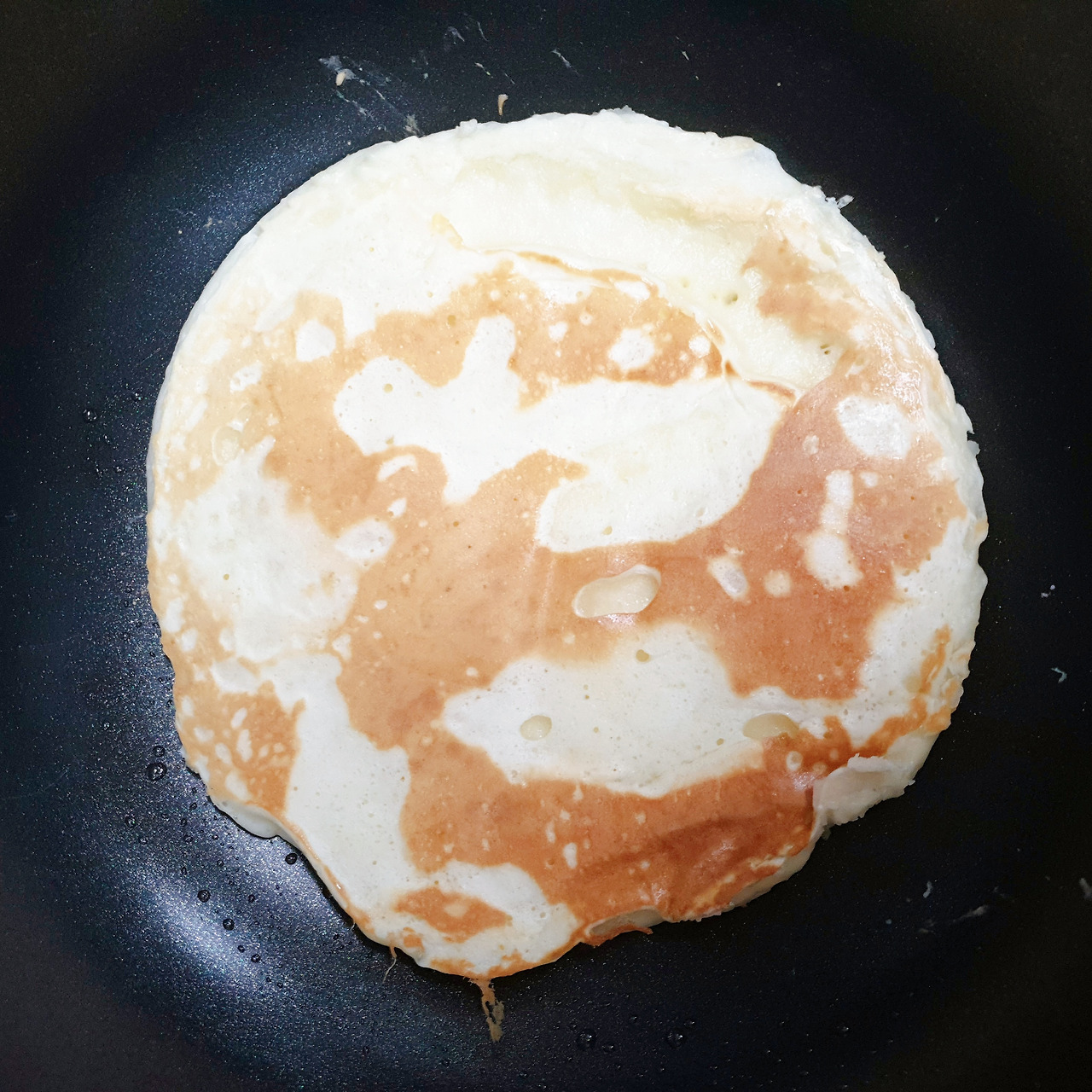 그렇게 2분 30초 정도 지났나... 반죽을 뒤집어보았는데 기대와는 다르게 바보 같은 모양이었다