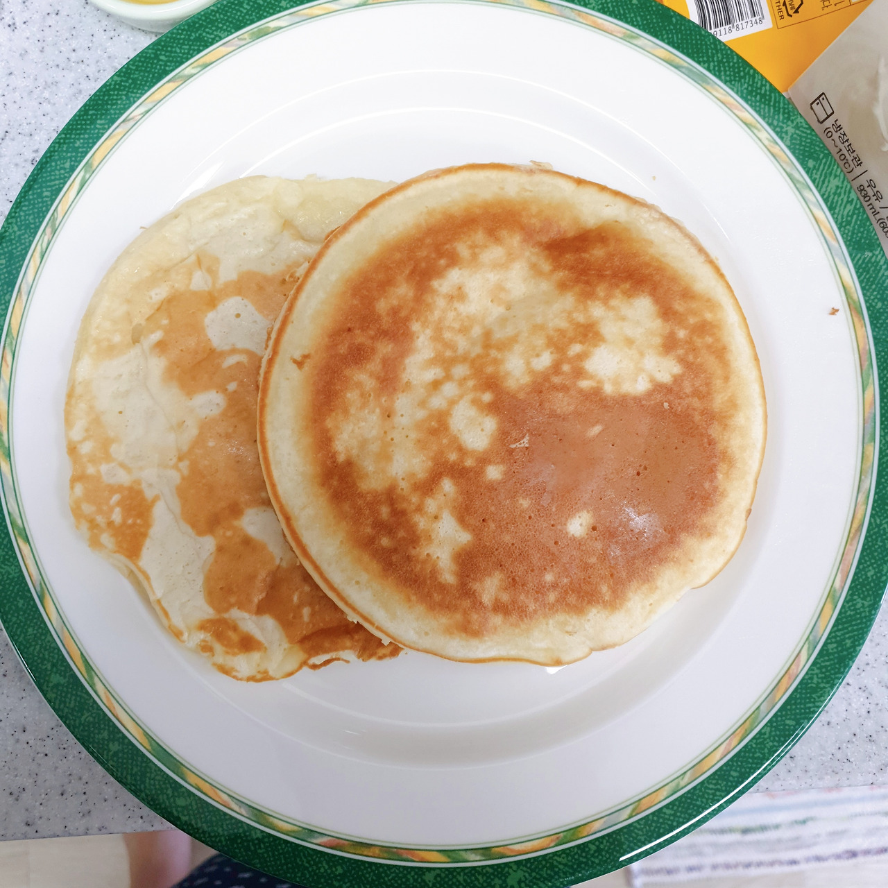 1차 시기 팬케이크는 2차 시키 팬케이크로 가려서 못생김을 상쇄시켰다