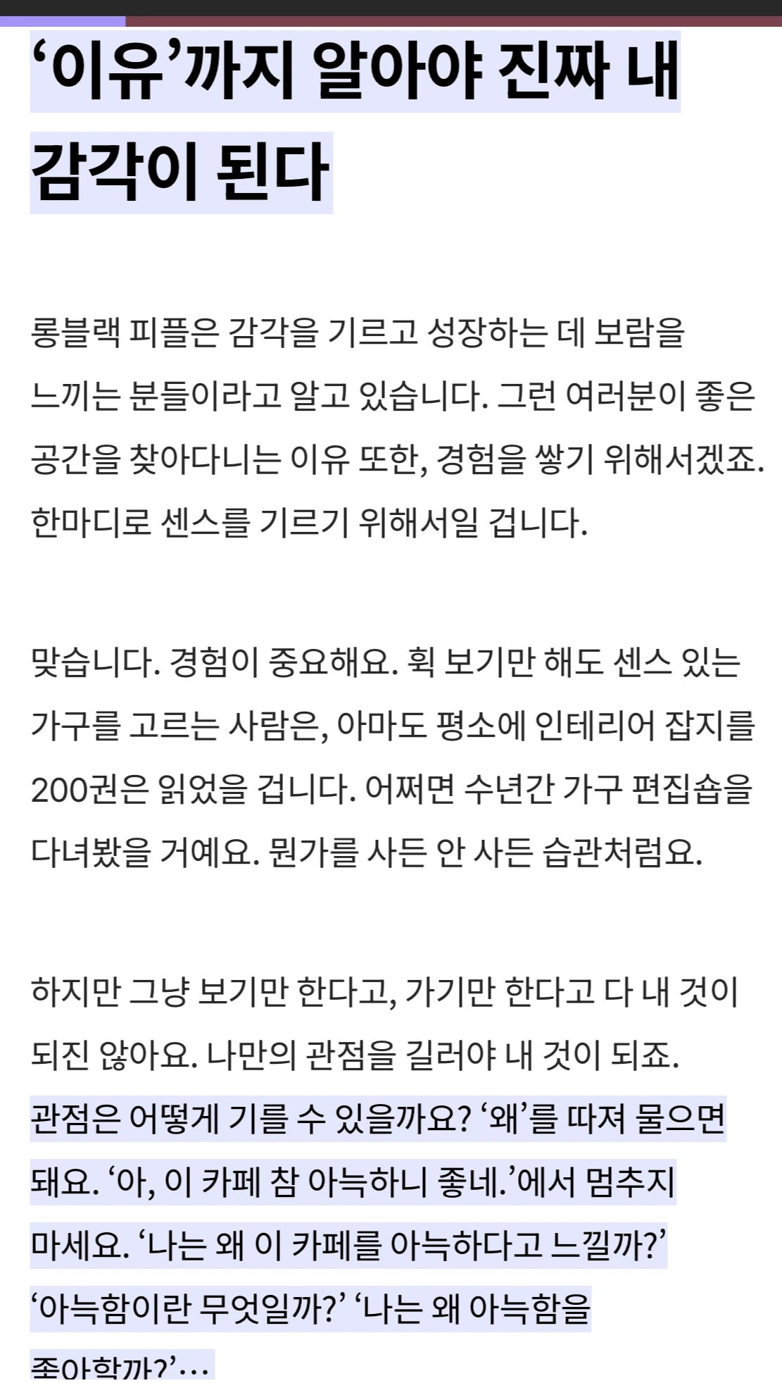 '이유'까지 알아야 진짜 내 감각이 되기 때문이다. (생각해본적 없지만 충분히 끄덕여지는 부분!)