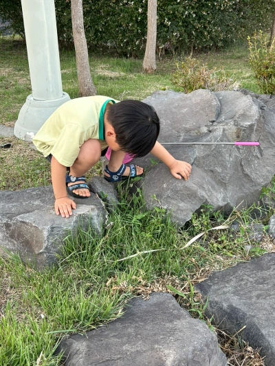 녀석은 겁도 없이 곤충을 덥석 집어 든다. 난 옆에서 다이소에서 산 천 원짜리 곤충통 들고 대기한다. 아무 거나 만지는 게 영 마음에 안 든다. 이상한 벌레한테 물리면 어쩌려고. 풀숲에 들어갔다 눈가가 밤톨처럼 부어오른 날도 있었다. 어린이집에서 '우리가 아는 곤충만 잡아요!'라고 배웠다던데, 아이는 건성으로 대답한다. 하긴 내가 봐도 애초에 지킬 수 없는 약속이다. 모르는 걸 잡아야 재미있지.
