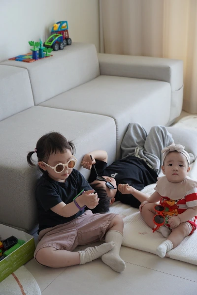 드물게 셋이서 사이좋게 놀 때도 있다. 잠깐 '그래, 셋 낳길 잘했지'하는 생각이 스친다. 곧 현실로 돌아온다. 늦어도 9시 20분까지는 도착해야 한다. 다급하게 “자 이제 준비하자” 얘기하면 어김없이 둘째가 다시 운다.