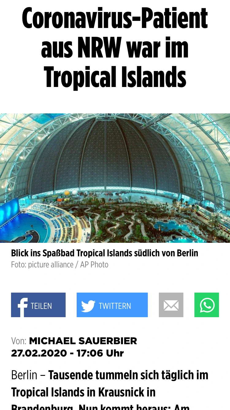 그다음 지역 가정의학회 협회장이 스튜디오에 나왔다. (베를린 트로피컬 아일랜드 사건 역시 제일 먼저 수영장 환경과 바이러스의 영향에 대한 전문가 자문을 먼저 실었다.)