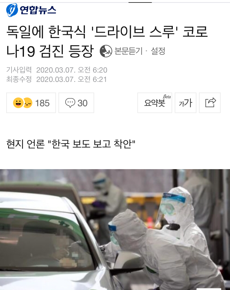 신속 정확한 진단과 24시간 의료 서비스, 대구에 모인 자원봉사자들과 기부금.. 드라이브스루 등 한국의 위기 대처 능력은 독일 뉴스에서 다양하게 소개되고 있으며 드라이브 검사법은 독일에도 도입이 된다.(독일 뿐만 아니라 이미 BBC, CNN등 많은 언론사가 한국의 대처 능력을 높이 평가했다.)