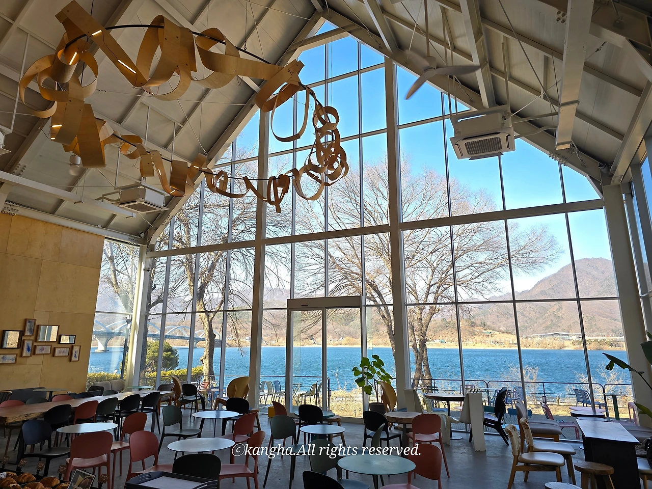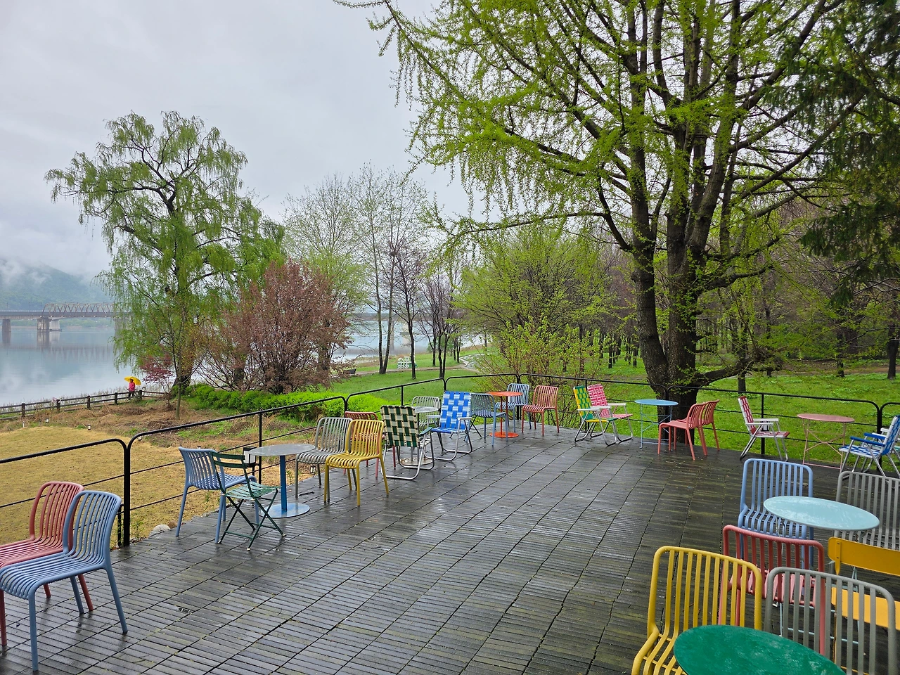 강변을 따라 걷는 것도 좋고, 나무가 우거진 숲길을 걷는 것도 좋은, 힐링하기 좋은 곳인데, 창문을 통해 보는 비 오는 날의 정취도 좋다. 겨울 설경도 좋을 듯하다.