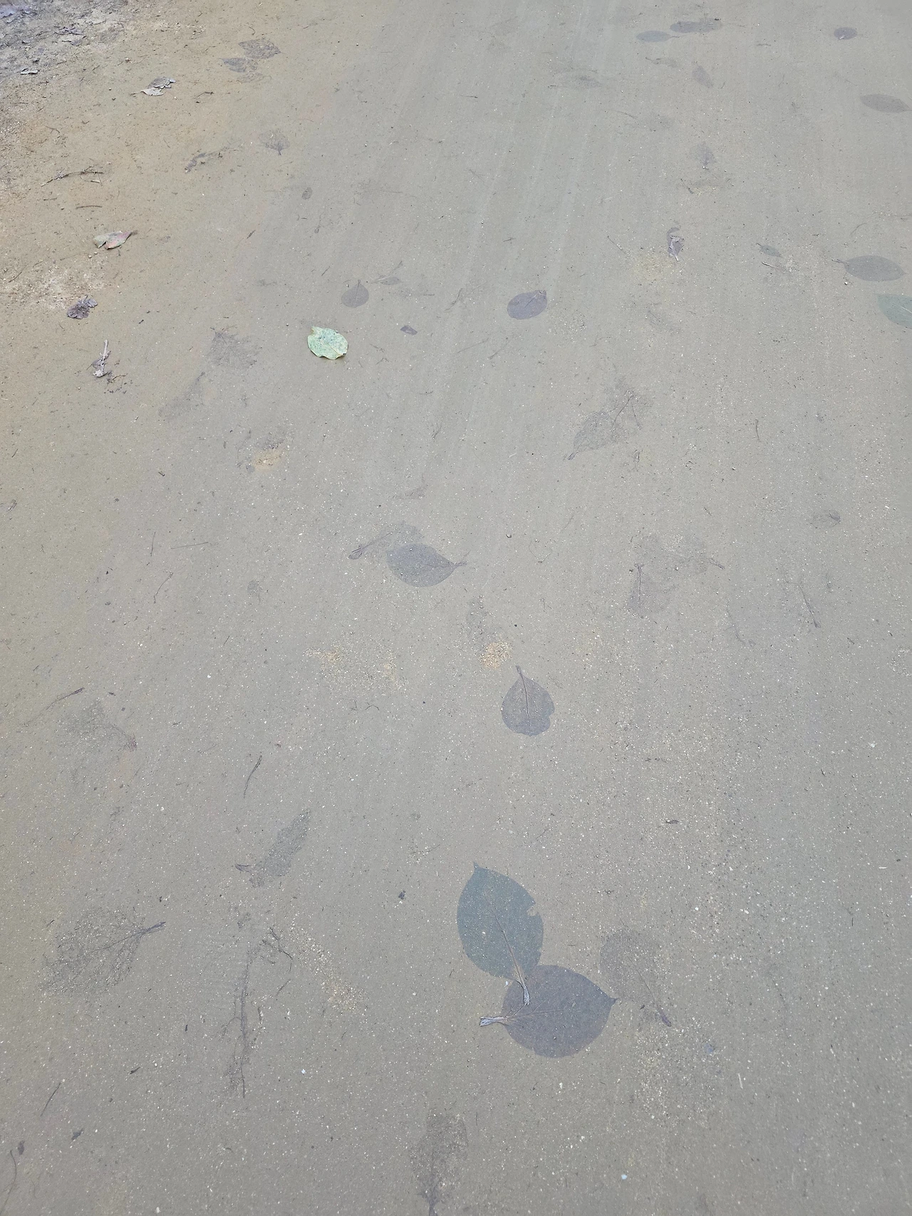 수많은 발자욱을 태운 나뭇잎이 마치 흙 속에 코팅되어 있는 듯하다.