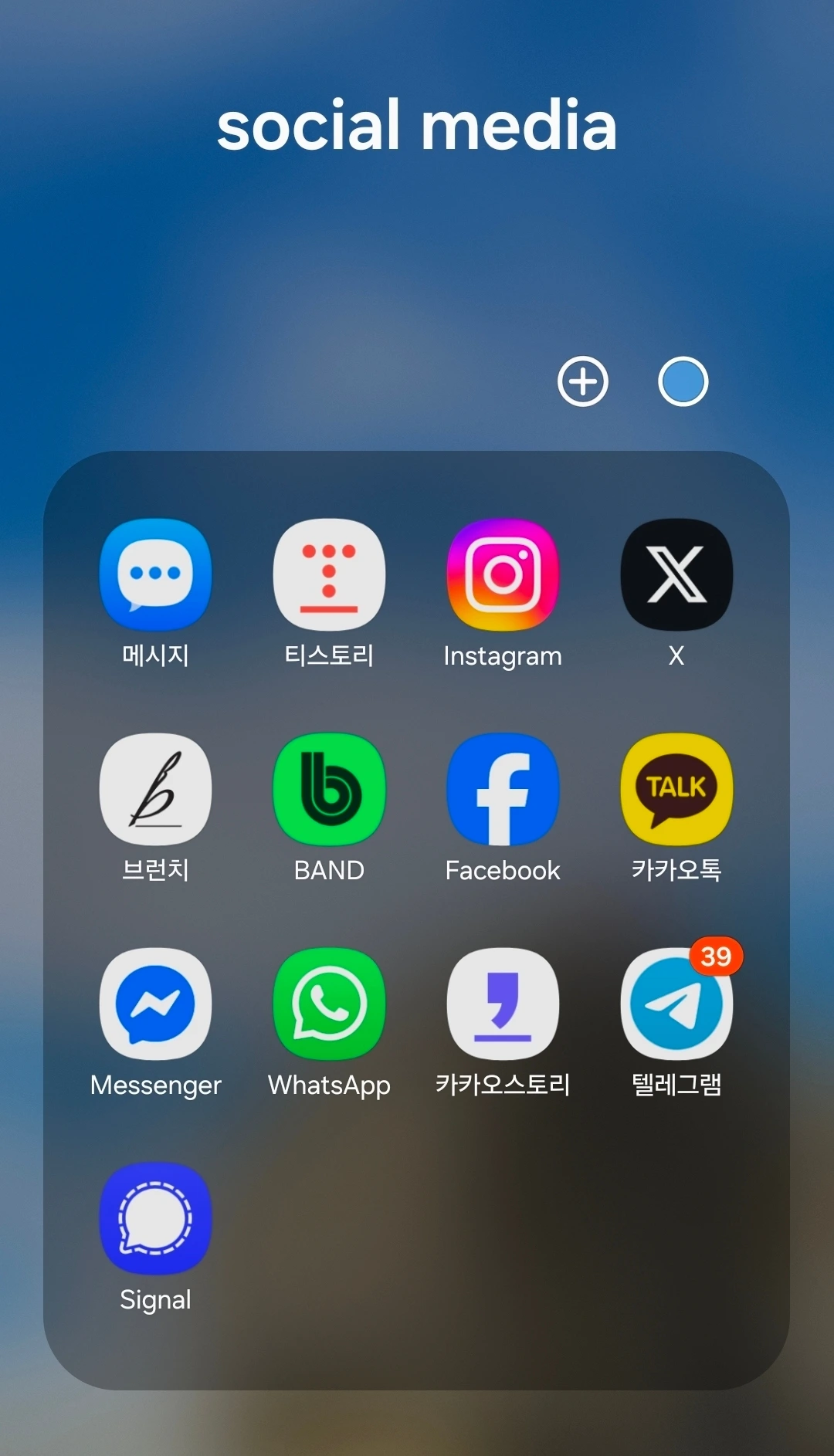 앱 화면이 두 개 이상 넘어가면 앱 찾기가 불편해 자주 사용하는 앱을 내 나름의 용도로 그룹화 하여 폴더로 만들었다.