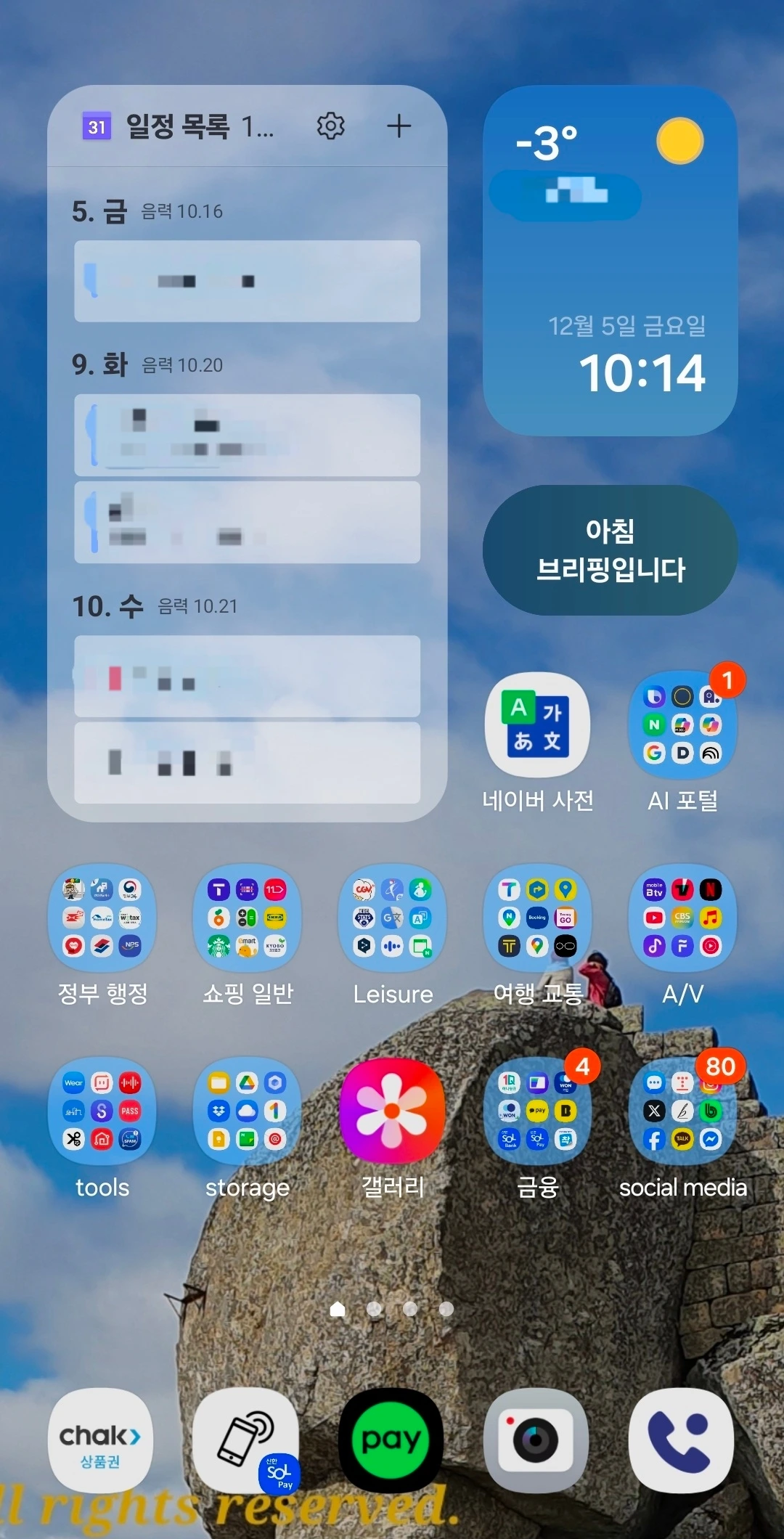 나야 이제 노년 세대이니 개성보다 편의성을 우선하지만, 젊은 세대들은 다양한 위젯과 글씨체 색상 등을 이용하여 스마트폰 화면에 저마다의 필요성을 담은 넘치는 개성을 연출하고 있다.