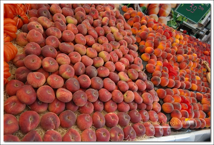 같은 복숭아인데, 생김새가 다르다. 왼쪽 애들은 납작한 모양새.
