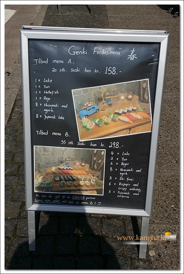 길을 나서 도로에서 만난 식당 메뉴 보드.