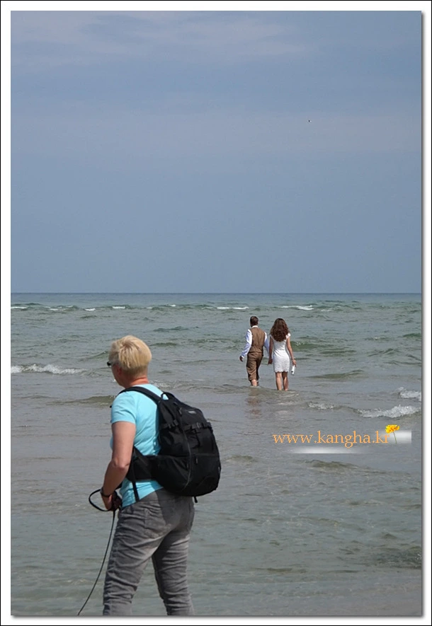 거의 모래사장을 걷는 거라 신발을 벗고 걷는 사람들이 많다.