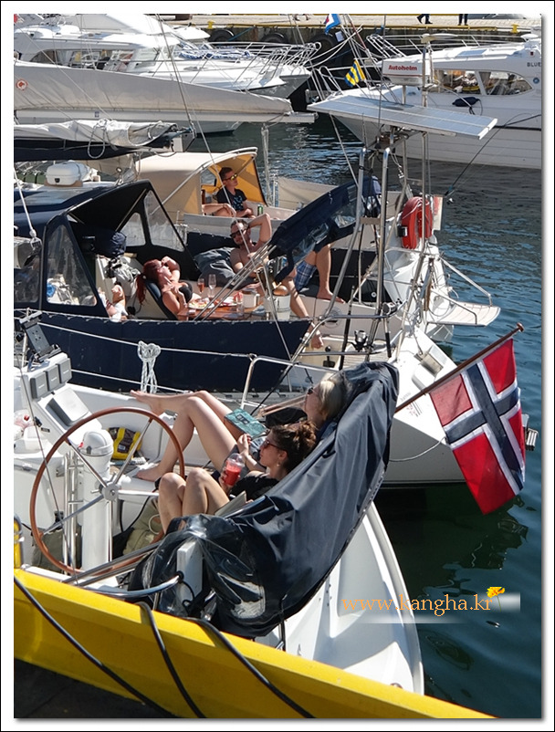 요트에서 와인과 함께 일광욕을 즐기는 모습들.