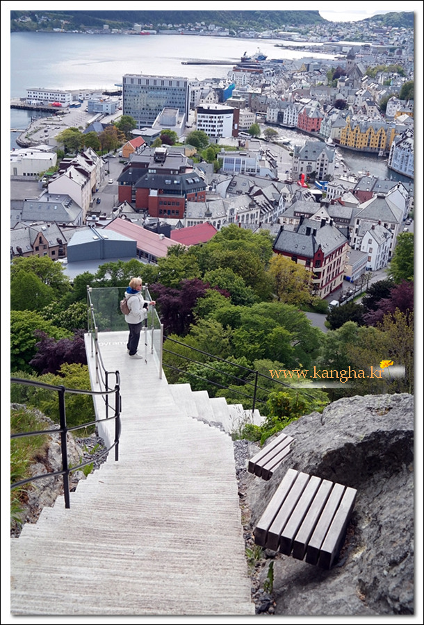 418 계단을 따라 올라 Kniven viewpoint에 이르면 올레순 주변이 모두 시야에 들어온다.
