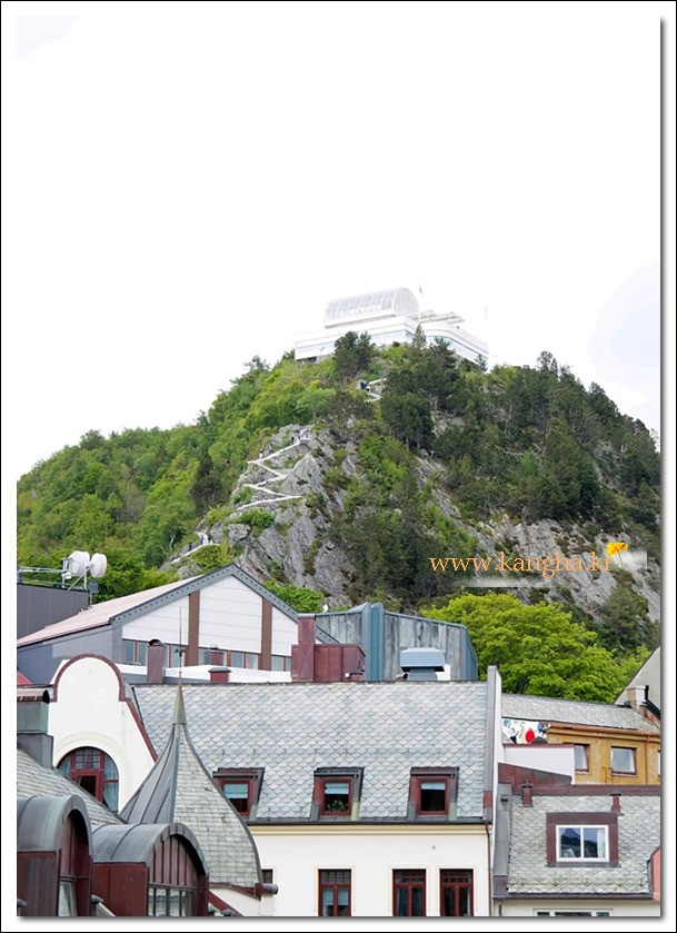 저 멀리 보이는 지그재그 길이 다운타운에서 악슬라(Aksla) 언덕을 오르는 418 계단이다.