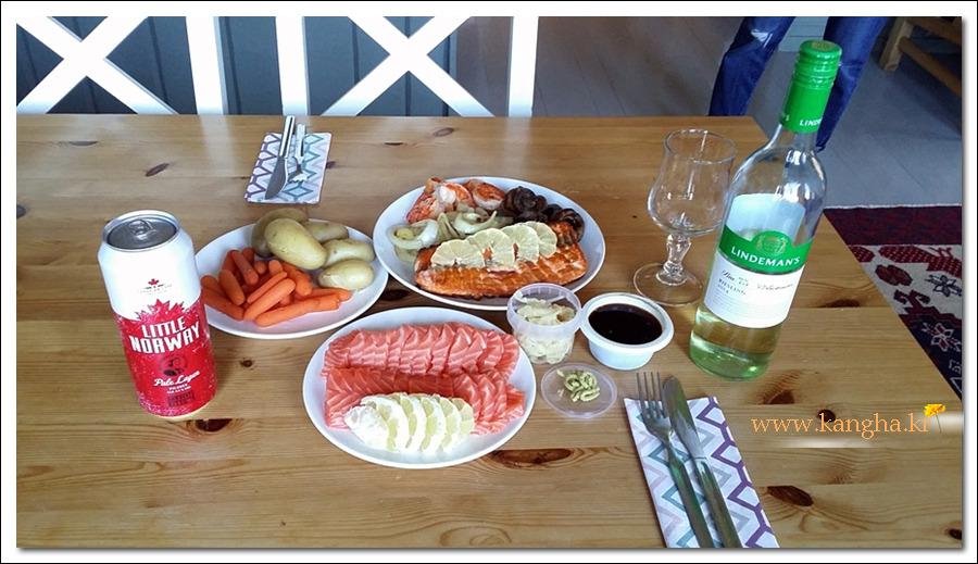노르웨이에 왔으니, 노르웨이 맥주와 함께 원산지 연어로 저녁 식사.