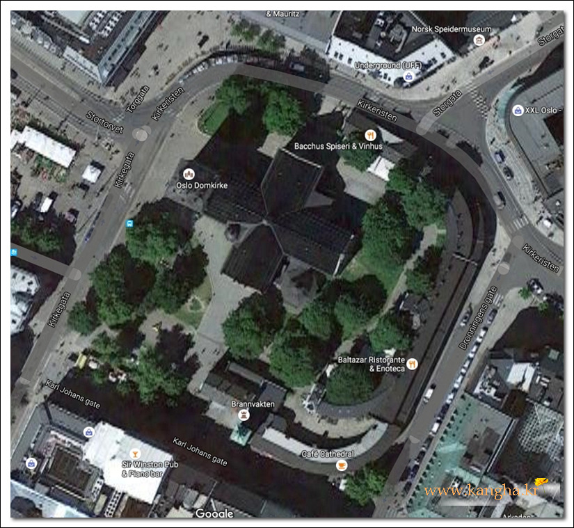 우리의 대단지 아파트처럼 오슬로 대성당은 도심 속에 하나의 블록을 형성하고 있다고 하면 이해가 빠를까.