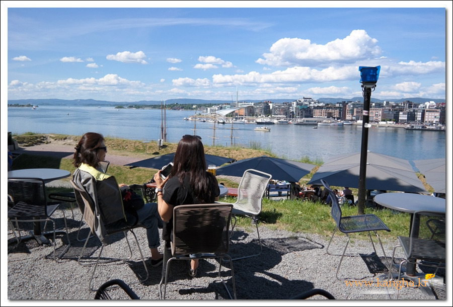 아케르스후스 슬롯을 돌아보고 후문으로 나오니 바다를 바라보는 카페가 있다.