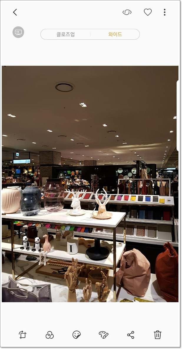 때문에, 갤러리에 저장된 사진을 간단한 화면 터치만으로 언제든지 광각렌즈가 담은 사진으로 볼 수 있다는 게 노트8 듀얼포커스의 재미.