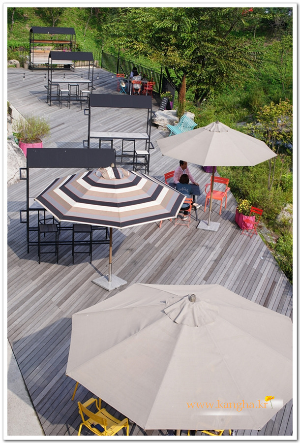 카페 데크에서 내려다 본 아래 층 레스토랑 데크.