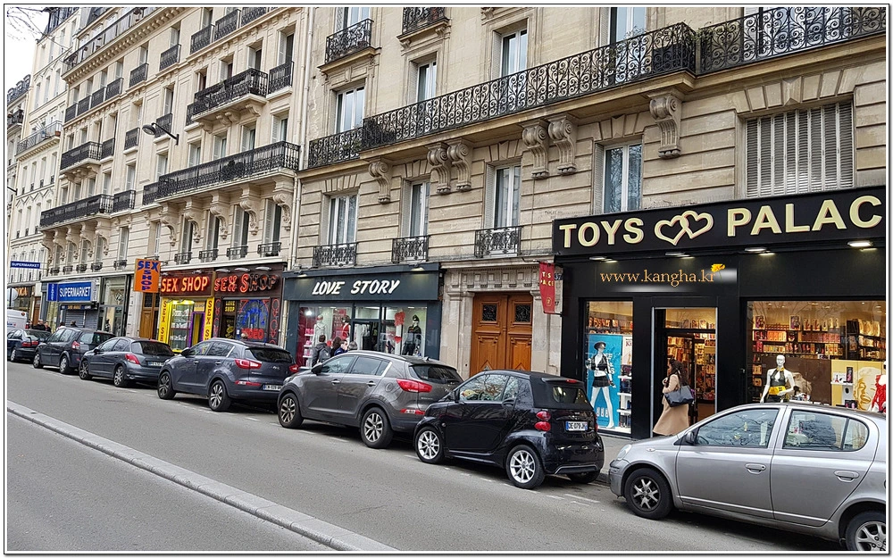 끌리쉬 街 좌우에는 성인용품 샵이 빼곡히 늘어서 있다.