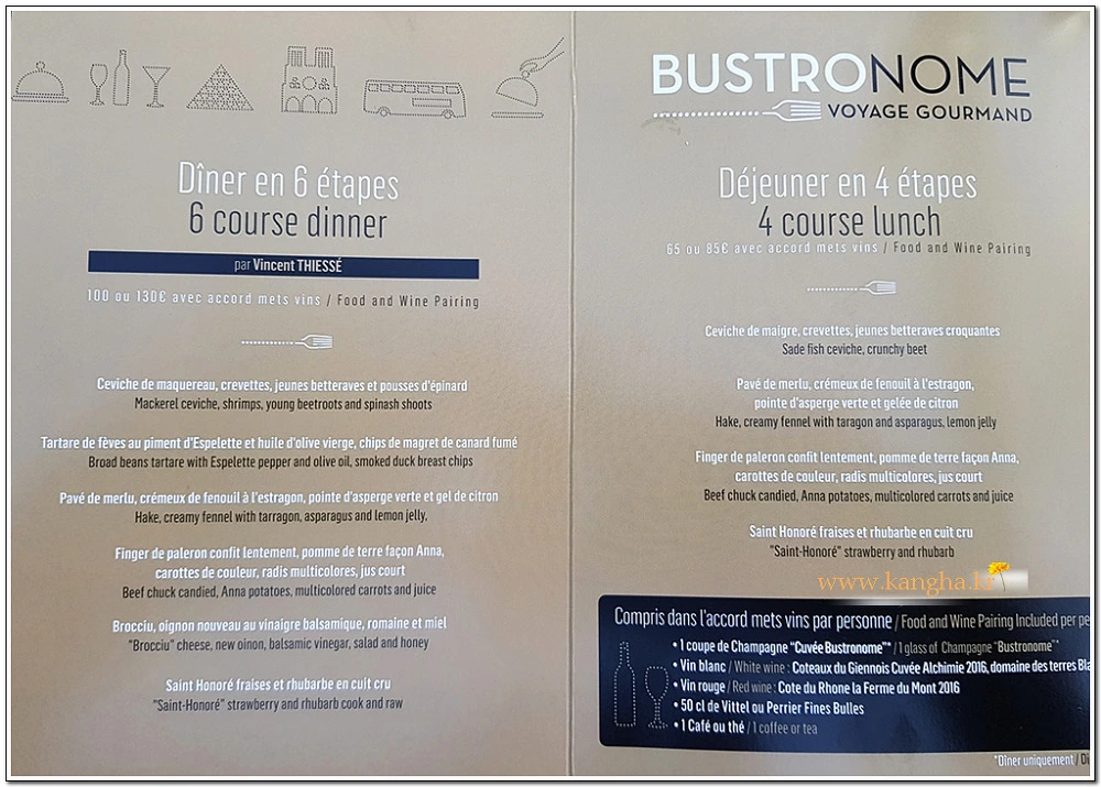 City Tour Bus가 아닌가 싶어 인터넷으로 버스 몸체의 [BUSTRONOME]을 검색해 보니, 시내관광을 하며 코스요리가 제공되는 Dining Tour Bus다.