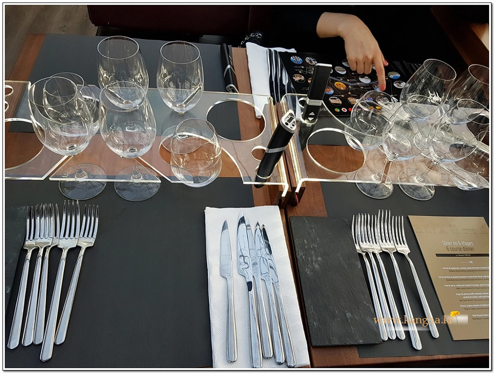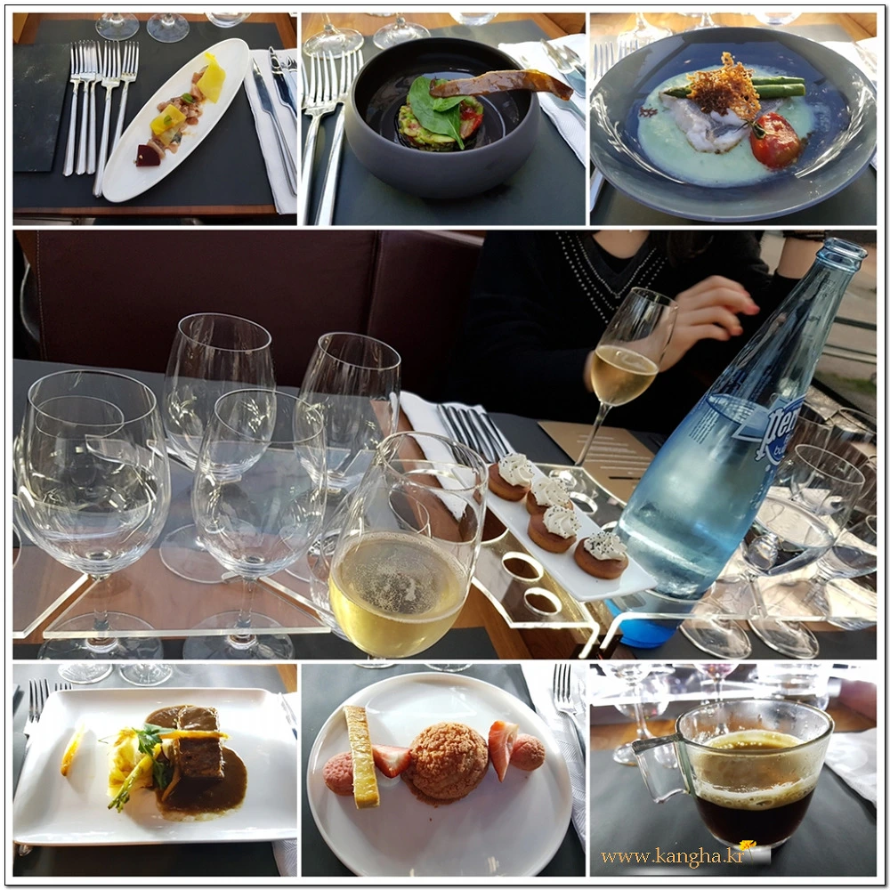 제공되는 6단계 코스요리는 같고, 레드와인과 화이트와인 각 한 잔씩 추가되는 차이가 30유로다.