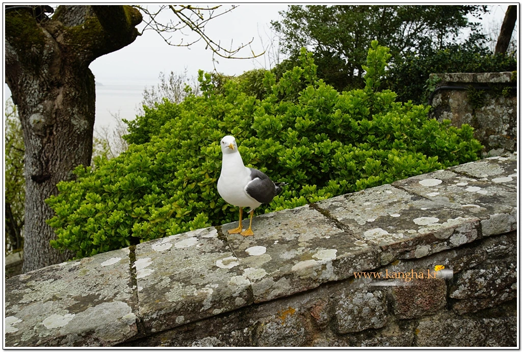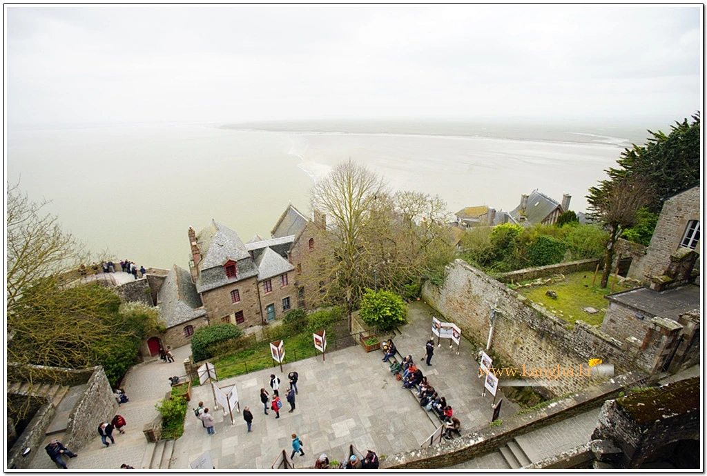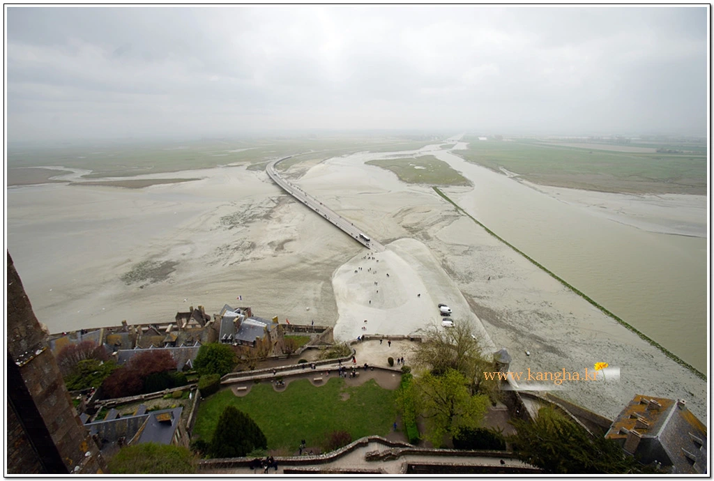 수도원 상층부 잔디정원에서 내다본 몽생미셀 외부.