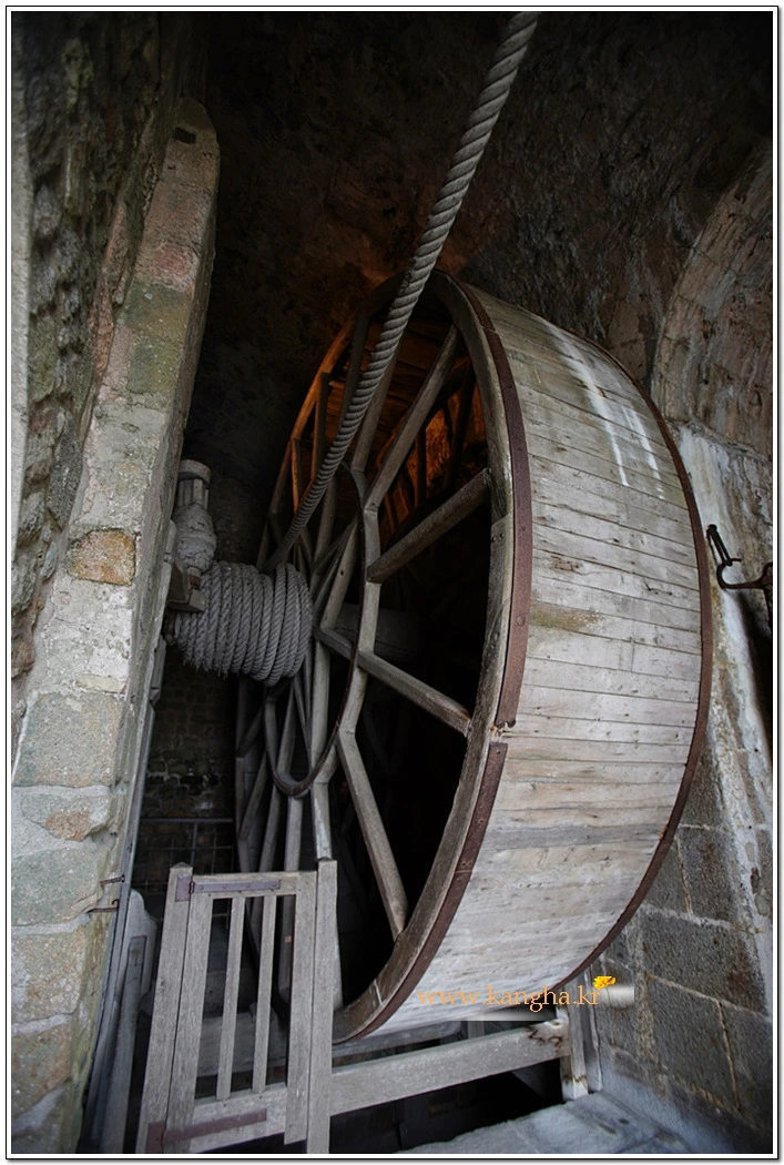 그들은 수도원 안에 거중기를 설치하여 아래까지 운반된 물품을 수도원 위로 끌어올렸다.