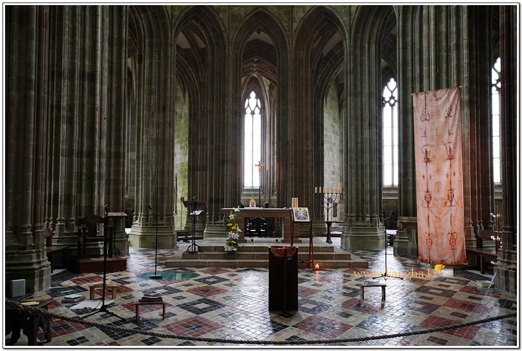 성 위의 성처럼 보이는 수도원은 몽생미셀의 가장 상층부에 위치한다.