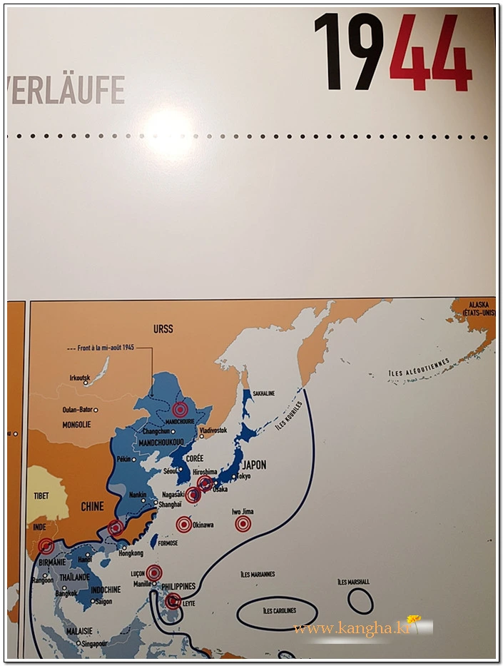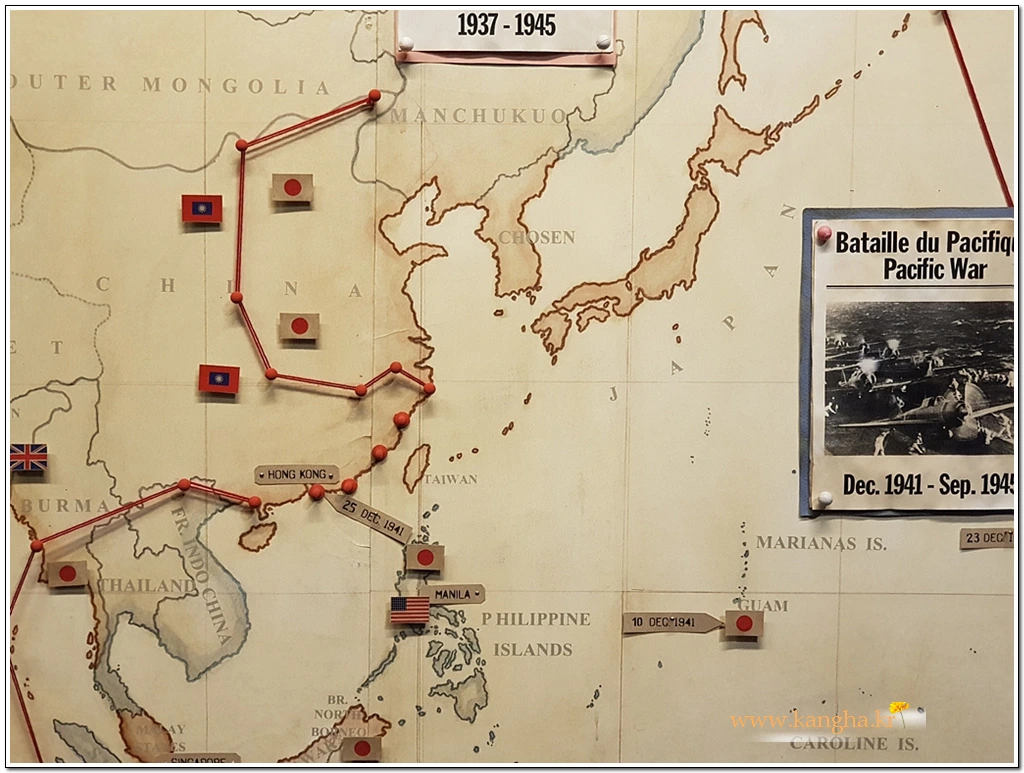 기념관에는 단지 노르망디상륙작전에 관한 기록 뿐 아니라, 2차대전 당시 세계 전황에 대한 기록도 있다.