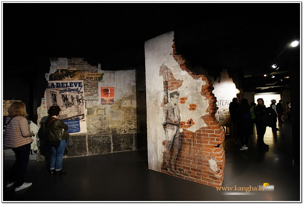 전쟁의 잔재인 폭격당한 벽에는 독일에 의해 점령당했던 프랑스 레지스탕스의 활동 모습이 담겨있다.