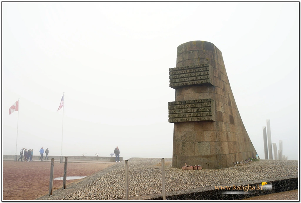주차를 하고 해변으로 나가니 안개로 인해 바다는 시야에 들어오지 않고 상륙기념탑과 조형물 옆으로 상륙작전에 함께 한 연합군의 국기가 휘날리고 있다.