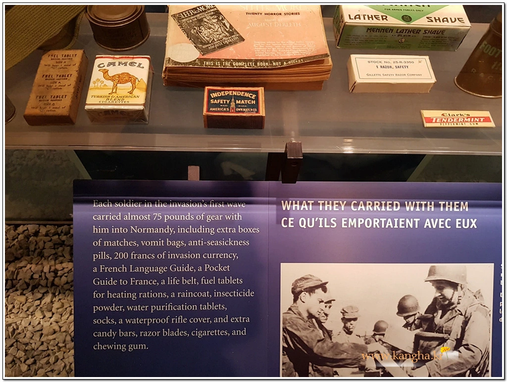 군인들에게 지급된 개인용품과 그에 대한 설명문.