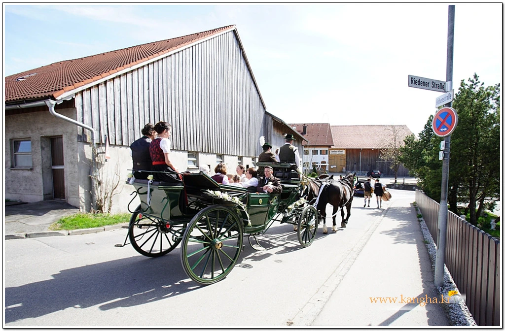 마차와 하객들의 복장이 아주 정겹게 조화를 이룬다.