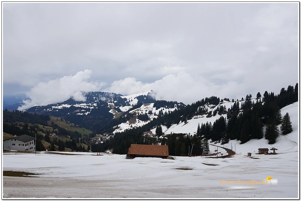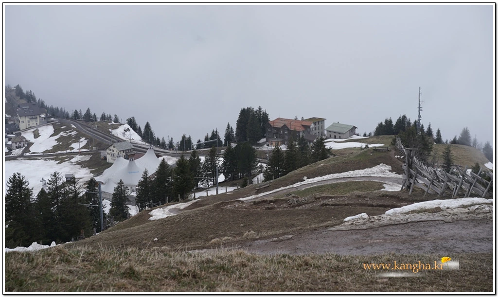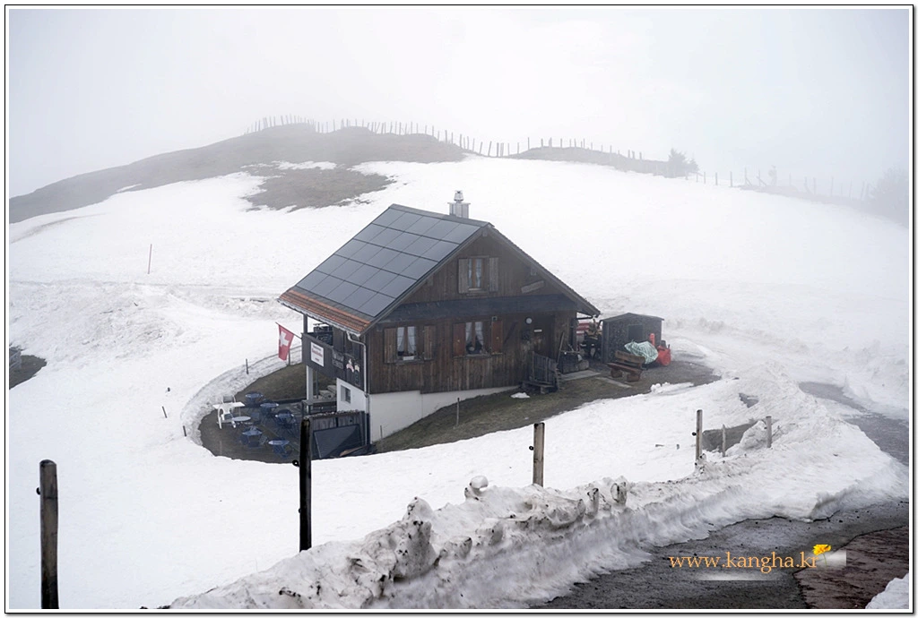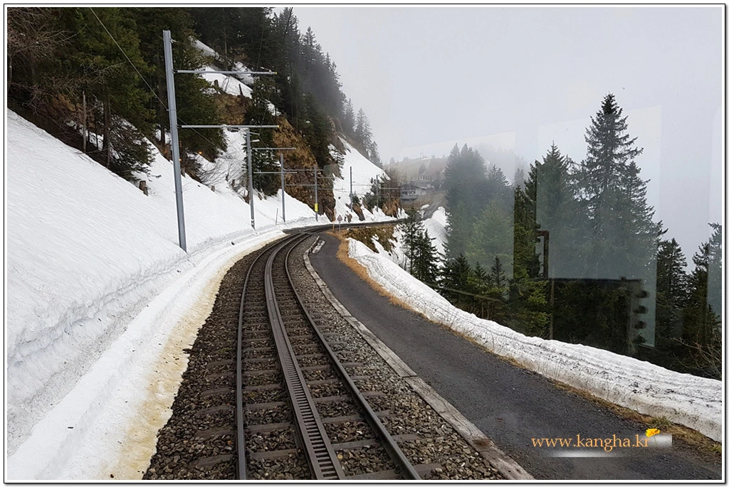 내려갈 때는 눈덮힌 리기산의 풍광을 즐기면서 중간 지점인 Rigi Kaltbad First까지 걷기로 했다.