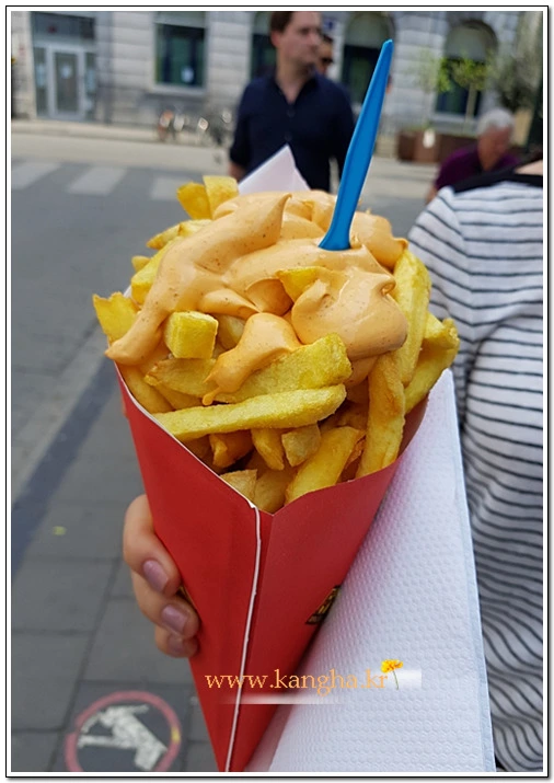 브뤼셀 거리를 걸으며 눈에 보이는 게 와플과 프라이 집인데, 그중에서도 소문난 집은 또 따로 있나보다.