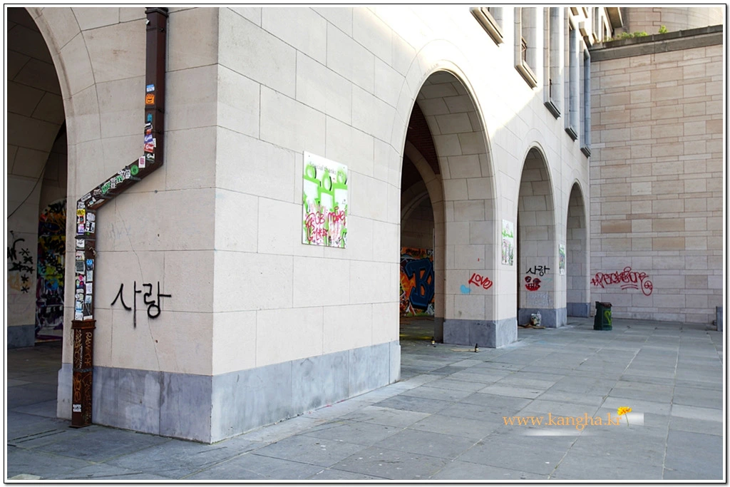 왕립도서관과 왕립미술관을 잇는 건물에 뜬금없이 보이는 한글.
