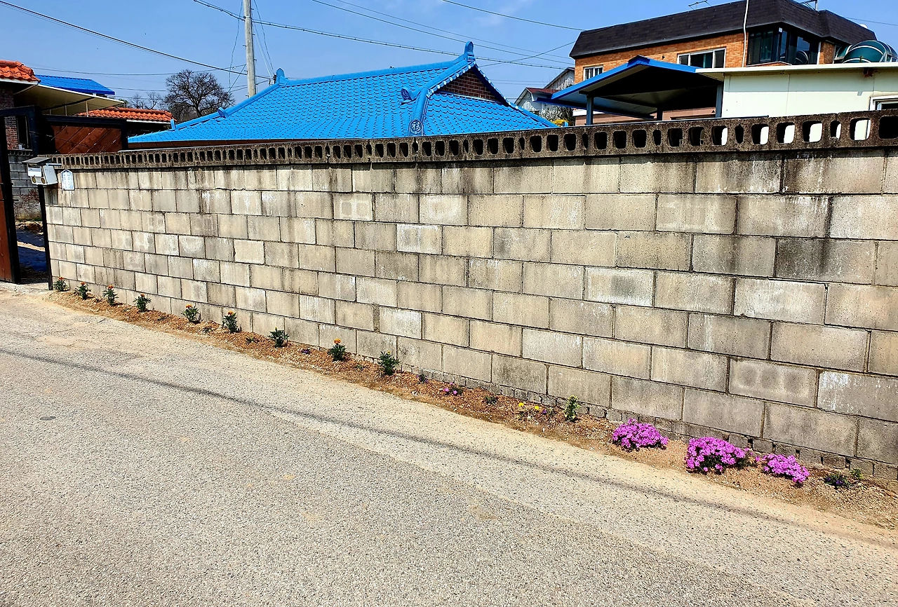 담장밑에 핀 꽃들에게서 오랜만에 시골 정취도 맛보고..