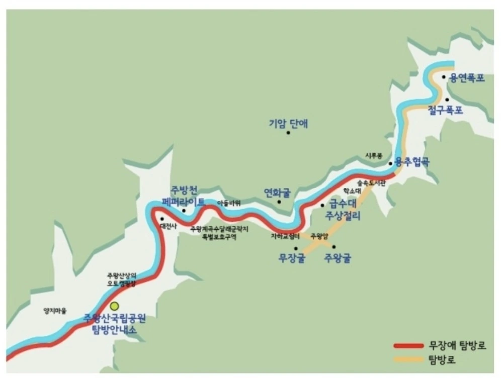 이번엔 아래 약도에 표기된 무장애 협곡코스를 이용했다.