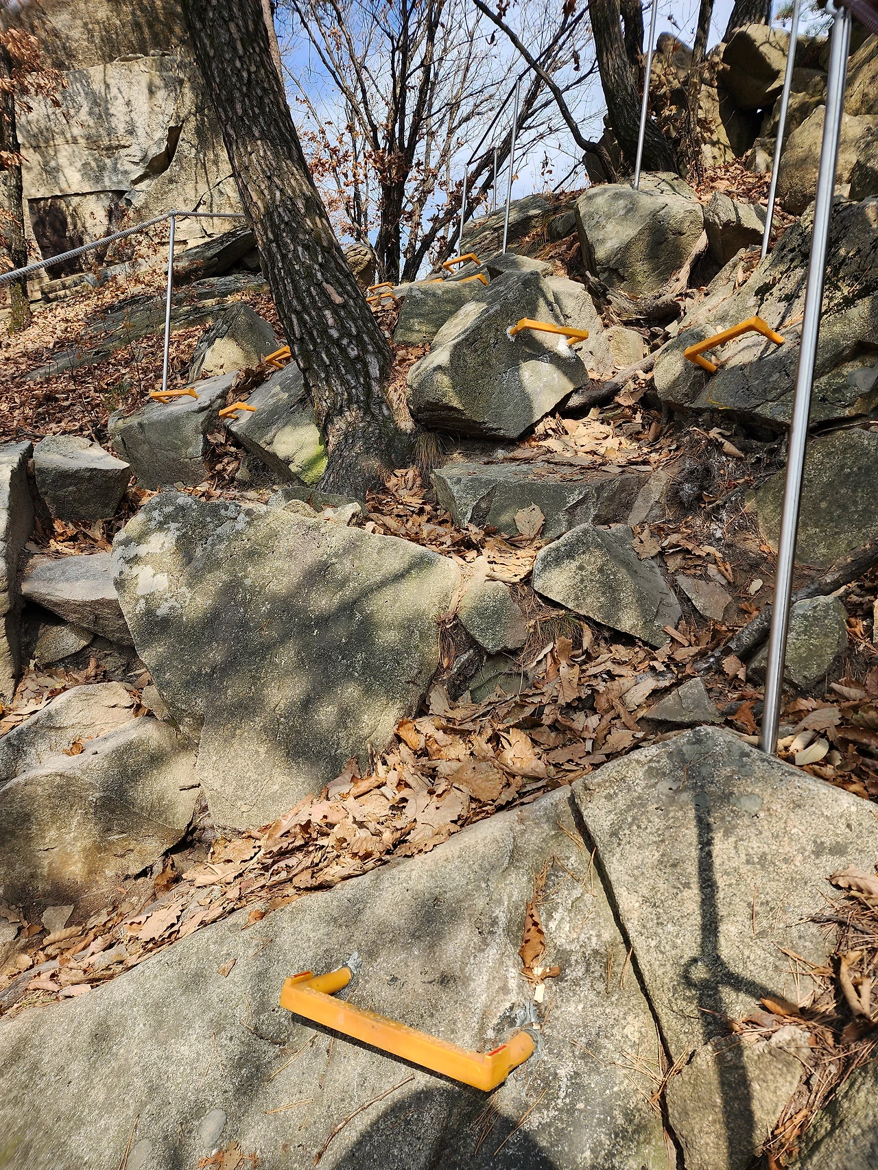 계단이 많은데 상당히 경사가 심한 경우도 많고, 곳곳에 급경사로 인해 로프를 잡고 암벽을 오르는 듯한 구간도 꽤
