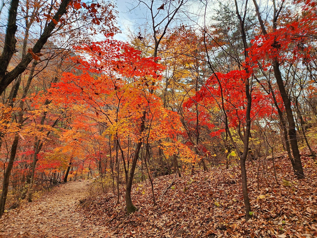 위로 갈수록 단풍도 지고 이미 낙엽이 무성하다.