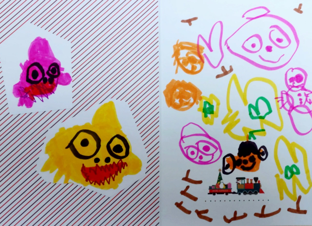 오른 쪽 면 왼 쪽의 주황색 얼굴이 할머니 할아버지라고.